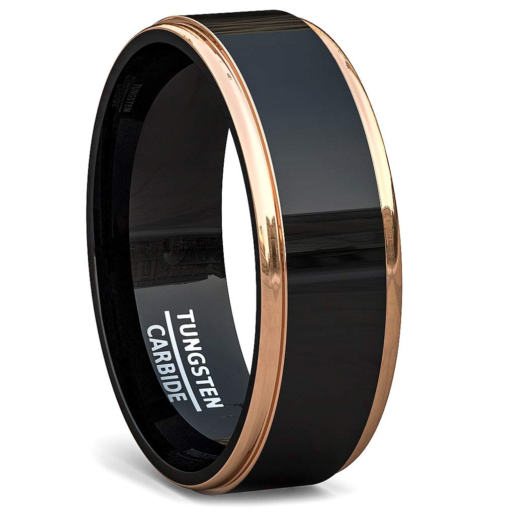 Black Tungsten Wedding Band 8mm Rose Gold Tungsten Wedding Ring Unique Tungsten Ring Anniversary Engagement 5 Amazon Com